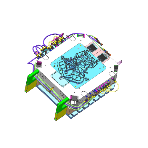 汽車(chē)件產(chǎn)品要求比較苛刻,尤其是鏈條蓋類(lèi)產(chǎn)品,該項(xiàng)目采用梳妝類(lèi)的流道確保產(chǎn)品在填充速度、同步的一致性,同時(shí)采用集中進(jìn)、出水保證了模具在運(yùn)行中溫度的控制,保證產(chǎn)品的成型質(zhì)量,確保砂孔符合了客戶(hù)要求。